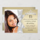 Invitación Quinceanera de oro y plata. Arco de diamante de seda dorada de bonito y tiara brillante. Todas las imágenes planas no tienen joyas ni arcos reales.