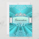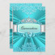Invitación verde azulada Quinceanera. Tiara y damasco de diamantes de bonito. Todas las imágenes planas no tienen joyas ni arcos reales.