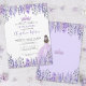 Invitación a la Quinceanera Floral Púrpura Tiara Watercolor. Una adorable flora acuática, un jardín de lilas o lavanda, es el escenario de esta temática fiesta de Quinceañera. Un aspecto simple pero caprichoso con tallos de lavanda en una variedad de tonos morados con algunas hojas verdes mezcladas. Una mezcla de tipos de letra serif clásicos y una hermosa tipografía de guiones hacen que esto sea elegante y divertido. Un tiara de princesa espumosa morada y un chica en un vestido de chispa morado le añaden. Puede cambiar todos los colores del tipo de letra para hacerlo más colorido o vibrante si lo desea. Las flores son un colorido más vibrante. Si desea que esta invitación sea más brillante, simplemente pulse el icono "eye" que está al lado de la capa denominada "white transparente" y que iluminará todo. También puede cambiar el fondo y la parte posterior del color de la invitación a lo que desee. Actualmente tiene flores de lavanda y la corona también. Disponible en forma de invitación impresa, o como una invitación digital descargable que puede enviar por correo electrónico o que ha impreso localmente.