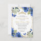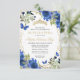 Moderno Glam Floral Marina Botánica Azul Real Oro Azul Tiara Esparkle Purpurina RSVP Cumpleaños Invitación Quinceañera