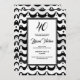 Invitación de cumpleaños con jazzy rayas de cebra onduladas en blanco y negro.