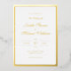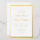 Esta sencilla y elegante invitación a una boda de Relieve metalizado dorado ha unido dos fuentes muy elegantes, lo que le da un aspecto moderno y tradicional. La frontera es una banda vendida de Relieve metalizado de oro. Edite fácilmente la plantilla con los detalles del boda deseado. Consulte nuestra colección para ver los elementos del conjunto de bodas coincidentes. Invitación sencilla al Relieve metalizado Boda blanco Relieve metalizado dorado.