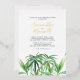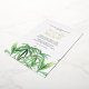 Estas invitaciones al Relieve metalizado le dan un toque elegante y elegante a los bodas y a las cenas de ensayo, con sus nombres en un guión de Relieve metalizado escrito a mano con oro, combinado con la tipografía clásica del serif. Un diseño de color verde acuático con exuberantes hojas tropicales en tonos verdes añade un ambiente fresco y vibrante, perfecto para bodas de destino y celebraciones costeras. El reverso presenta un color azul de cristal de mar complementario para un acabado sereno y sofisticado. Ideal para ambientes tropicales, de playa y de jardín, esta invitación combina la belleza natural con la elegancia atemporal. Para explorar la completa suite de papel boda de Victoria Grigaliunas de Do Tell A Belle, visite www.zazzle.com/dotellabelle.