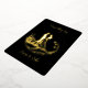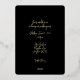 Una bella invitación a la boda simplista en un verdadero Relieve metalizado de oro sobre un fondo negro. Imagen de una pareja de novias encerrada en círculo. Coincidencia Guardar la fecha y RSVP están disponibles