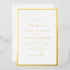 Simple Invitación al Relieve metalizado Boda de oro. Sencilla y elegante, esta hermosa invitación a la boda presenta un elegante borde y un elegante guión de caligrafía presionado en Relieve metalizado de oro real.