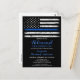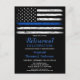 Invitaciones delgadas a la Jubilación de la Policía de la Línea Azul o invitaciones al Partido de Graduación de la Policía. Celebre años de servicio dedicado, o celebre su nuevo graduado de la academia de policía, e invite a amigos y familiares a su fiesta de aplicación de la ley con este estilo rústico de madera de la Línea Azul delgada Invitación a la jubilación de la policía y invitaciones a graduarse de la academia de policía - diseño de la bandera estadounidense en colores de la bandera de la policía, diseño angustiado. Esta invitación a la jubilación de oficiales de policía también es perfecta para invitaciones a graduarse en la academia de policía, cambiar de lugar de personalización. Vea nuestra colección para ver regalos de retiro de la policía, regalos de graduación de la policía, favores del partido y suministros. DERECHOS RESERVADOS © 2021 Judy Burrows, Black Dog Art - Todos los derechos reservados. Tarjeta postal de la invitación a jubilarse de oficial de policía delgado de la línea azul