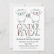 El género de los bebés con traje de bebé con la temática de traje de bebé revelan la invitación.