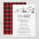La invitación a Rustic Wilderness Buffalo I Do BBQ es ideal para una fiesta con tema de montaña. Nuestro evento inspirado en la montaña presenta una escena de montaña y bosque ilustrada a mano con un fondo de cuadros de búfalo inspirado en cabañas, perfecto para su fiesta de compromiso I do BBQ.