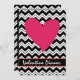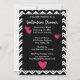 Envíe esta moderna y elegante invitación de diseño para su cena de San Valentín u otro evento de San Valentín. Esta invitación es totalmente personalizable para su información sobre su evento. Un corazón rojo asimétrico aparece en color encima de este sofisticado diseño de zag chevron negro y blanco. Un lado de esta invitación de invitación tiene el diseño de un chevron blanco y negro y un gran corazón rojo. Hay un bar negro bajo el corazón con las palabras personalizables "Valentine Dinner". El otro lado tiene un área negra con un borde de chevron con corazones pequeños al azar y toda la información de tu evento. Personalizable completo. Coincidir con sellos de coordinación, sobres, pegatinas y etiquetas de dirección de retorno.