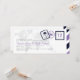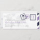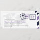 Personalizar de este vintage pase de embarque de la aerolínea y anuncie su fecha boda de una manera divertida y única! Mostrados en tonos navales y morados medianos. Mezcla de fuentes de máquina de escribir y fuentes caligráficas para un verdadero estilo vintage.