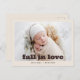 ¡Celebra la llegada de nuestra pequeña calabaza en una acogedora fiesta de Sip and See con tema de otoño! Únete a nosotros para una cálida tarde llena de sidra de manzana, golosinas de temporada y la alegría de dar la bienvenida a nuestro miembro más nuevo de la familia. La invitación presenta una gran foto con "Enamórate" elegantemente escrito a mano en la parte inferior, dejando espacio para incluir el nombre y la fecha de nacimiento del bebé debajo. En el reverso, encontrarás los detalles de envío a la derecha y otra encantadora imagen a la izquierda, junto con todos los detalles esenciales de la fiesta. ¡No podemos esperar para compartir este momento especial contigo!