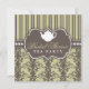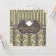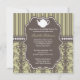 Esta invitación prepara el terreno para una ducha de moda que seguramente amará. Una silueta dulce de una delicada tetera con elegante mocha marrón y verde sabio damasco y rayas, todo ello crea un diseño encantador con un toque francés adecuado para una elegante ducha marrón fiesta de té.