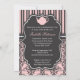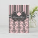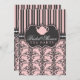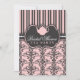 Esta invitación prepara el terreno para una ducha de moda que seguramente amará. Una silueta dulce de una delicada tetera con elegante damasco negro y rosa y estriberas, todo ello crea un diseño encantador con un toque francés adecuado para una elegante ducha marrón fiesta de té.