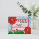 Invite a la familia y amigos a un picnic, fiesta o barbacoa de verano con esta encantadora invitación. Invitación temática de verano con dos flores de pasto rojo brillante, una manta de picnic y hierba verde frente a un brillante cielo azul de verano. Personalizable con el texto. ¡Una gran manera de celebrar un cuarto de fiesta de julio, reunión familiar cocinada o simplemente un divertido picnic de cumpleaños!