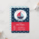 En medio de un fondo azul marino se encuentra "un mar de anclas" y una caldera con un bonito y pequeño velero. Una banda ancha y roja sostiene los detalles de tu fiesta. Invitaciones náuticas perfectas para fiestas de cumpleaños juveniles o duchas para bebés.<a href='http://www.freepik.com/free-vector/birthday-card-with-nautical-elements_886557.htm'>Diseñado por Freepik</a>). <br/>() La tarjeta es fácil de personalizar con su texto, tipo de letra, color de letra, opciones de forma de papel y elección de seis tipos de papel.<br/>() ¿No es exactamente lo que buscas? Todos nuestros productos pueden ser personalizados diseñados para satisfacer sus necesidades sin cargo adicional.<br/>() Simplemente contáctenos en heartfelthelper@gmail.com.<br/>() Productos de coordinación disponibles: ¡Sólo pregúntennos!