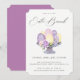 Huevo de Pascua y exposición floral, invitación a Brunch de Pascua. La parte posterior de la tarjeta cuenta con la coordinación del color púrpura sólido.