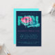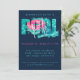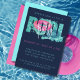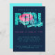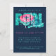 ¿Arrojar un fiesta de piscina tropical y buscar una invitación apropiada? ¡Aquí lo encontrarás! Este moderno diseño moderno, fresco y de moda presenta obras de arte con una piscina de color azul verdoso, un flotador rosado caliente y una tipografía moderna con salpicaduras de agua sobre un fondo azul de medianoche. Ideal para los fiestas de la piscina. Simplemente agregue los detalles de su fiesta a la tarjeta y prepárese para el fiesta!