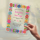 Imprimido sobre un acrílico transparente y elegante, el diseño exhibe vivos flores en ricos tonos de rojo, amarillo, rosa y turquesa, creando un sorprendente contraste con el fondo claro. El colorido borde floral añade un encanto festivo, mientras que la tipografía moderna y el diseño limpio aportan elegancia y sofisticación. Perfecto para las parejas que quieren celebrar su herencia con un toque fresco y contemporáneo, esta invitación marca el tono para una celebración alegre e inolvidable.