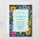 Celebra el amor con esta invitación a la boda mexicana a acuarela, adornada con un vibrante patrón floral inspirado en la artesanía tradicional mexicana. Flores acuáticas pintadas a mano en audaces tonos alegres como rojos, naranjas, rosa y verde adornan el diseño con un suave toque artístico. Las brochas fluidas y la composición orgánica aportan una energía romántica y festiva a la invitación, lo que la hace perfecta para parejas que planean una celebración colorida y culturalmente rica. Mezcla de elegancia y tradición, esta invitación capta el corazón de una verdadera fiesta.