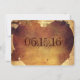 Este diseño de estilo rústico de estilo antiguo también está en la parte posterior de la invitación boda, junto con la fecha boda en números con letra de guión. Son excelentes para bodas rurales, bodas de granjas, bodas rurales al aire libre, bodas de graneros y todo aquel que quiera una invitación a una boda rústica y angustiada.