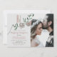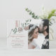 Esta moderna invitación a celebrar bodas con fotos con motivos florales presenta un diseño dividido y limpio, con una gran foto personal en los elegantes ilustraciones rosas de la derecha y junto con las iniciales de la pareja a la izquierda. Con un acento de rosa polvoriento y vegetación, es a la vez fresco y romántico, ideal para las parejas que quieren dar una primera impresión significativa con sencillez y calidez. Perfecto para bodas de primavera o verano, locales de jardín y celebraciones informales o rústicas con una estética moderna.