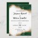 Esta invitación a la boda tiene un rico tema de color verde esmeralda y oro. El diseño incluye un lujoso y brillante borde dorado que se mezcla con los bordes verdes profundos, creando un elegante y sofisticado ambiente para celebrar su día especial.