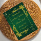 Invitación a una boda elegante verde y dorada