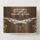 Elegante fondo de madera oscura rodeado de hojas y luces fiestas colgantes. Esta invitación incluye la información del boda y la tarjeta postal RSVP que sus invitados desgarran y envían. No se necesitan sobres. Ideal para un verano, otoño, primavera, boho o boda al aire libre.