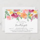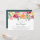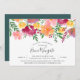 La invitación a la ducha de moda con flores de novia incluye un borde superior de flores de amapola acuarela en tonos vivos de verano. Personalice los detalles de su ducha de novia con letras escritas a mano y tradicionales sans serif. Las tarjetas se convierten en verde jasper de color joyas.