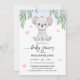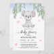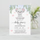 Una invitación a la ducha para bebés decorada con un lindo ilustracion de koala y hojas de eucalipto.