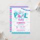 Disfrute de este verano con esta moderna y colorida fiesta en la piscina. Perfecto para un bash de cumpleaños de los chicas, este diseño vibrante presenta colores tropicales en azul, rosa y morado con un falso efecto purpurina que añade el toque perfecto de brillo. Bolas de playa, un banner festivo y gráficos con salpicaduras de agua hacen de esta invitación el lugar ideal para los niños fiestas de la piscina de verano, ya sea que estén celebrando en el patio trasero, en una piscina comunitaria o en un resort tropical.