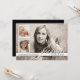 Un diseño elegante que incluye una foto completa de tu graduado y dos fotos de entrada en el frente con todos los detalles del fiesta o la invitación en la parte posterior. El elegante estilo blanco y negro es atemporal y clásico.