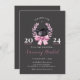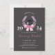 Invitaciones minimalistas a fiestas de graduación con gorro de mortero negro con arco rosado, con un texto moderno que es fácil de personalizar 🎀