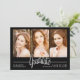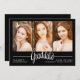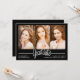 Un diseño moderno y nítido presenta espacios para tres grandes fotos en la parte delantera y una foto más pequeña en la parte trasera en blanco y negro clásico. Un aspecto contemporáneo perfecto para tu joven graduado. Se muestra como una invitación de fiesta de graduación, todas las líneas de texto se pueden personalizar para cambiar fácilmente a una invitación.