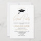 Invitación moderna del Partido de Graduación. con gorras de mortero negras caídas, y una plantilla de texto moderna que es fácil de personalizar.
