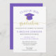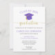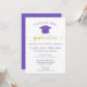 Anuncie su fiesta de graduación con esta simple invitación morada y dorada. Esta invitación incluye una gorra morada con letras doradas. Personalizar el texto para compartir todos los detalles de tu fiesta de graduación.