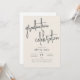 Invite a amigos y familiares a celebrar su hito con una encantadora invitación a graduarse en beige, con un divertido tipo de letra de guión. Las palabras "Invitación a la graduación" se muestran de forma destacada en letras grandes y divertidas a lo largo de la parte superior, marcando un tono alegre para el evento. A continuación, los detalles adicionales de los fiestas se presentan en una fuente elegante, lo que garantiza claridad y sofisticación. Este encantador diseño combina una temática alegre con un toque de refinamiento, lo que lo convierte en la forma perfecta de anunciar y conmemorar su logro especial.