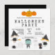 Esta invitación para una fiesta de Halloween presenta calabazas, las brujas más lindas, junto con un adorable fantasma, esqueleto y niño Frankenstein, con un pequeño gato negro y una araña. Adecuado para reuniones familiares de Halloween. Agregue su texto personalizado a este diseño utilizando las casillas "Editar esta plantilla de diseño" en el lado derecho del artículo, o haga clic en el botón azul "Personalizar" para organizar el texto, cambiar las fuentes y los colores y también agregar información adicional o imágenes a este diseño. Elija entre doce tipos de papel únicos, dos opciones de impresión y seis opciones de forma para diseñar una tarjeta que sea perfecta para usted. © Julie McIver