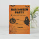 ¡Atrévete a la fiesta! Una audaz invitación vintage de Halloween con murciélagos, fantasma, calabaza y araña, perfecta para celebraciones espeluznantes.