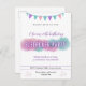 Invitación de cumpleaños elegante y divertida para una fiesta de pijamas de una niña o adolescente. Un efecto de brillo moderno y hermosos colores rosa pastel, púrpura y azul/teal se utilizan en la letra, y el diseño se completa con una estrella púrpura. Personalizable para personalizar con todos los detalles de tu fiesta.