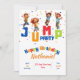 Nuestra invitación a la fiesta de salto marca el tono para una emocionante fiesta de rebote llena de risas y emoción. Celebre el cumpleaños de su pequeño con nuestra fiesta de trampolín que les hará saltar de alegría. ¡Saltemos a una celebración memorable con nuestra invitación a la fiesta de salto! ¡Los niños y sus amigos se divertirán mucho!