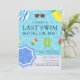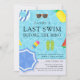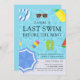 Haga un chapuzón con esta invitación de soltero de piscina. Un diseño luminoso y colorido para divertirse al sol con el texto "Última nadación antes del anillo". Con un diseño atrevido y moderno y detalles de la piscina lúdica, es perfecto para invitar a la tripulación a una celebración inolvidable junto al agua. Ya sea que esté planeando un relajado día de bebidas y natación o un fabuloso baño en una piscina privada, esta invitación marca el tono para las buenas vibraciones. Fácil de personalizar con la fecha, ubicación y detalles del fiesta.