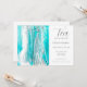 Esta pintura azul turquesa de mujeres disfrutando de su reunión nupcial es una invitación artística, única y ecléctica para su evento especial. La divertida obra de arte de la invitación es una pintura original hecha con tintas de alcohol por Paula Pollifrone en su estudio de casa.