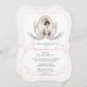 Retroceda a tiempos señoriales con esta invitación de fiesta de té inspirada en la era de la Regencia. El suave borde rosa con florituras parecidas a plumas realza el retrato femenino enmarcado en un sencillo marco floral.