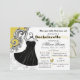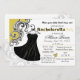 Pequeñas invitaciones para una fiesta de tocador con vestido negro en amarillo