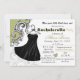 Pequeñas invitaciones para una fiesta de tocador con vestido negro en verde