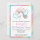 Un bello unicornio pintado a mano en suaves colores malvavisco sobre un arcoiris de bonito. Diversión para un fiesta de arte, dormir o cualquier celebración mágica!