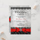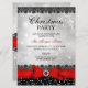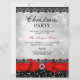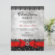 Invitación de fiesta de navidades. Elegante encaje negro damasco y arco de seda roja. Por favor, tenga en cuenta que todas las imágenes planas, no tienen joyas ni arcos reales.