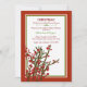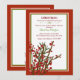 Ramas de bayas de invierno y pino crean un ramo de temporada para acentuar esta invitación roja, verde y blanca. Una maravillosa tarjeta de vacaciones, invitación para fiestas y más.