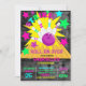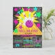 Sigue adelante para una fiesta de cumpleaños de bolos con colores de neón y niñita sobre un fondo texturado negro. Personaliza la información de tu fiesta y estás listo para ir.